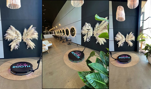 🌟 Step 2: Be Bold, Be You! - It’s your moment under the limelight. Whether you're striking a dramatic pose, sharing a laugh, or showcasing your best moves, our booth is here to capture every bit of it. With our camera circling around you, rest assured, every expression and action is immortalized in dynamic, vivid detail.